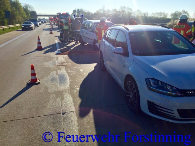 Die Feuerwehr Forstinning und Anzing sicherten die Unfallstelle ab. Die ausgelaufenen Betriebsmittel wurden mit Ölbinder gebunden. Nachdem die Autobahnpolizei den Unfall aufgenommen hat, konnten wir die beschädigten Fahrzeuge auf den Pannenstreifen schieben. Dadurch konnten wir sehr rasch beide Fahrspuren wieder frei geben um keine unnötige Verkehrsbehinderung zu schaffen.