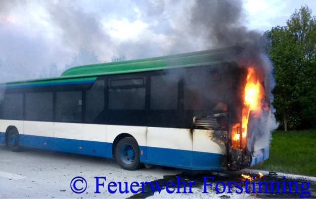 Ein Bus geriet während der Fahrt in Brand, der Fahrer stoppte das Fahrzeug auf einen Seitenstreifen, Höhe der AS Forstinning und begann sofort mit Löscharbeiten.