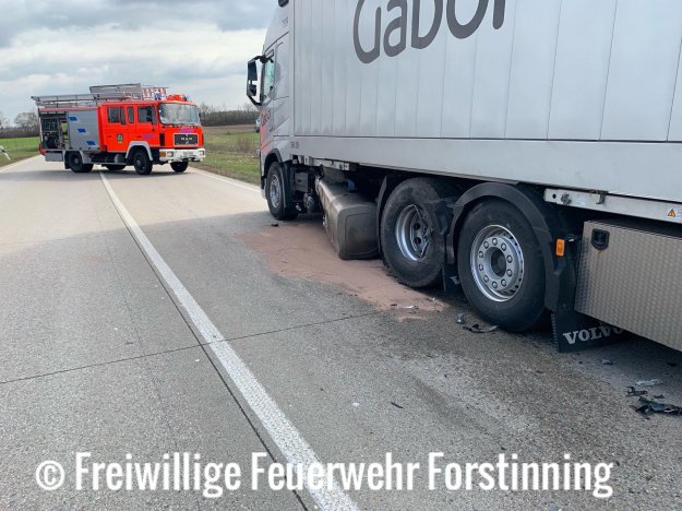 Heute Nachmittag wurden wir auf die Ortsumgehung Forstinning („Spange“) B12 zu einem Verkehrsunfall mit LKW alarmiert.