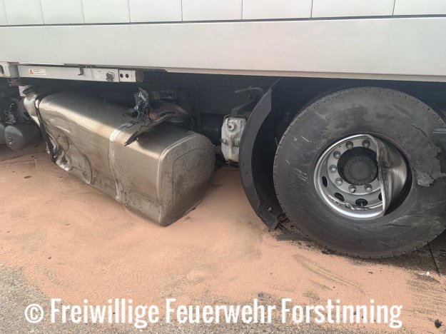 Ein dem LKW-Gespann entgegenkommender PKW kam aus ungeklärter Ursache in den Gegenverkehr und rammte seitlich gegen den Dieseltank und die hinteren Achsen des Zugfahrzeugs.