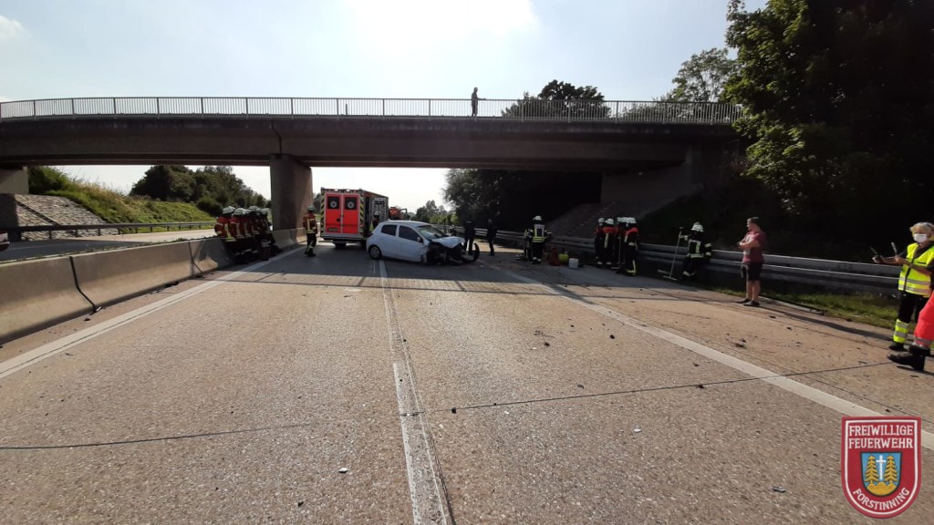 Am 12.09.2020 um 15:25 wurde die FF Forstinning gemeinsam mit der FF Anzing zu einem Verkehrsunfall auf der A94 alarmiert. Es handelte sich um einen PKW der aus bisher ungeklärten Gründen von der Fahrbahn abkam, in die Leitplanke fuhr und anschließend auf der Fahrbahn zum Stehen kam. Der schwerverletzte Fahrer wurde mit einem Helikopter ins Krankenhaus transportiert. Die vorläufige Vollsperrung der Fahrbahn wurde zunächst nicht aufgehoben, um den Behörden die Ermittlung der Unfallursache zu ermöglichen.