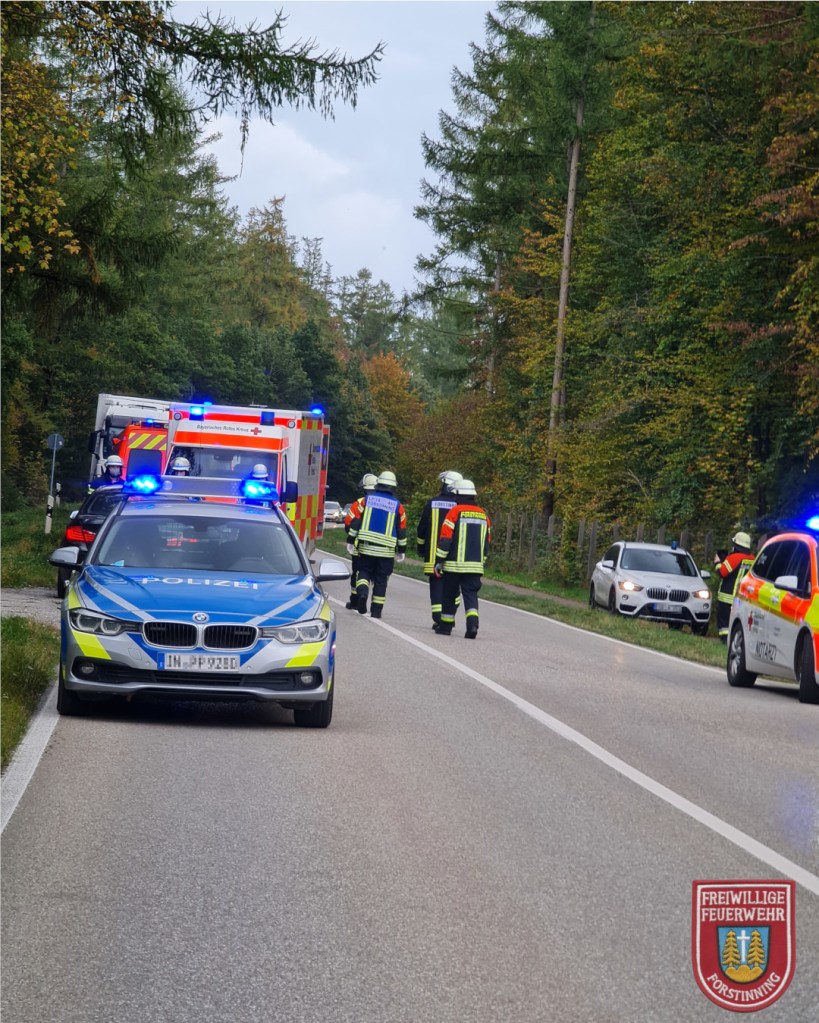 Am Sonntag, den 18.10.2020 um 14:06 Uhr, wurde die FF Forstinning zu einem Verkehrsunfall in den Ebersberger Forst alarmiert. Auf der St2080 kam es zum Zusammenstoß zweier PKW mit insgesamt vier Insassen. In einer unübersichtlichen Kurve prallten die beiden Fahrer gegeneinander, als ein Fahrer links abbog, und der andere gleichzeitig überholte. Die beiden kamen am Straßenrand zum Stehen. Unsere Aufgabe bestand darin, die Unfallstelle abzusichern, was einseitig bereits in Schwaberwegen erfolgte, sodass keine neuen PKW mehr in den Ebersberg Forst gelangten. Nachdem einige Insassen in die nächstliegenden Krankenhäuser befördert werden konnten, wurde die Vollsperrung der St2080 wieder aufgehoben. Niemand wurde schwer verletzt.