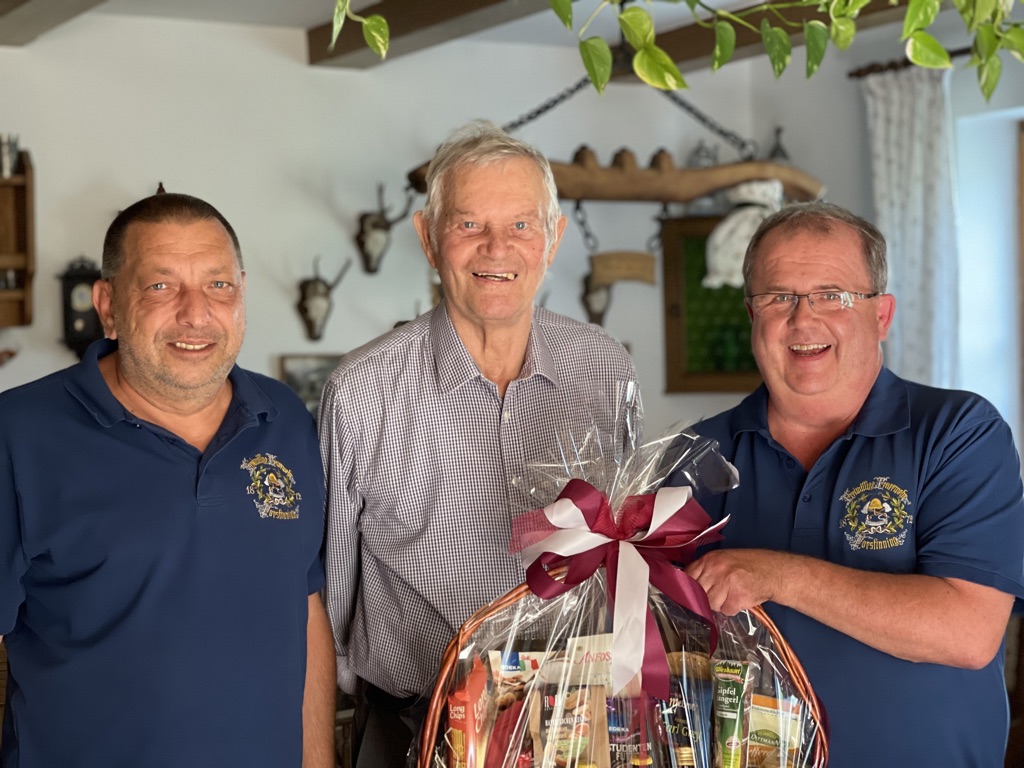 Unser Ehrenmitglied Alois Heinzeller feierte Anfang September sein Geburtstagsjubiläum. Ausgestattet mit einem Geschenkekorb und den besten Geburtstagswünschen der Feuerwehr Forstinning wurde dieser von Rolf Stuber und Stefan Seidl überreicht.