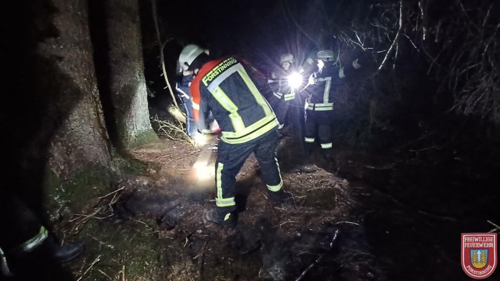 Am Sonntag, den 03.10.2022, um 19:06 Uhr, wurde die Feuerwehr Forstinning zu einem Kleinbrand im Freien alarmiert. Im Waldgebiet des Ebersberger Forstes im Ortsteil Schwaberwegen wurde durch aufmerksame Anwohner eine leichte Rauchentwicklung entdeckt. Eine herbeigerufene Streife der Polizei konnte dann eine kleine, noch qualmende und glühende, Fläche am Boden feststellen, die scheinbar durch einen vorhergehenden Brand entstand. Wir wurden anschließend alarmiert, um ein mögliches Ausbreiten zu verhindern, und konnte das betroffene Gebiet ablöschen. Der Grund für diese Hitzeentwicklung ist bisher noch unklar, die Polizei bittet deshalb um Hinweise.