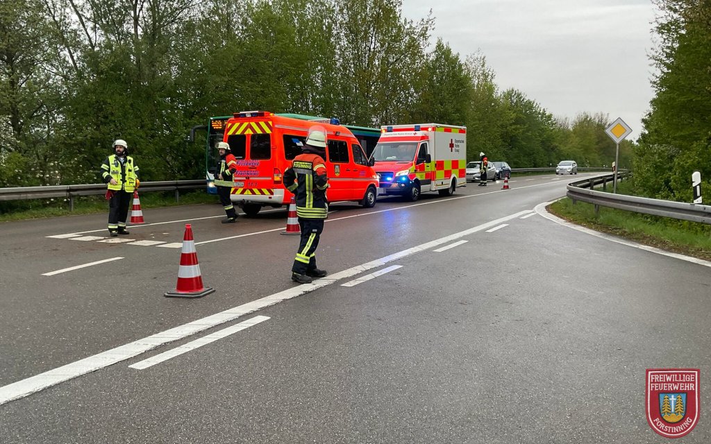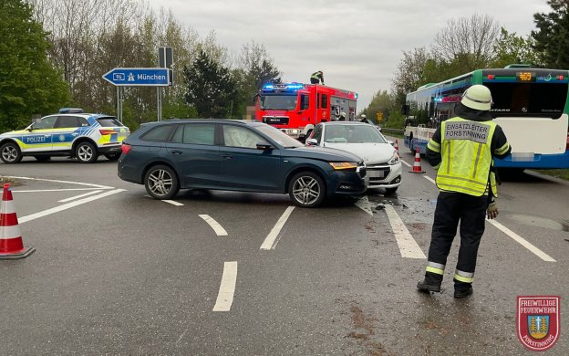 Im morgendlichen Berufsverkehr kam es am Montag, den 22.04.24, zu einem Verkehrsunfall zwischen zwei PKW. Auf Höhe der Anschlussstelle Forstinning an der A94 waren auf der Brücke zwei Fahrzeuge zusammengestoßen. Die Insassen konnten sich selbst befreien, mussten aber im weiteren Verlauf mit leichten Verletzungen vom Rettungsdienst ins nächstgelegene Krankenhaus verbracht werden. Wir sperrten die St2080 an der Einsatzstelle einspurig, um der Polizei die Unfallaufnahme zu ermöglichen. Zusätzlich kümmerten wir uns um auslaufende Betriebsstoffe, stellten den Brandschutz sicher und bewegten die Unfallfahrzeuge anschließend von der Straße auf eine freie Standfläche. Nach ca. 1,5 Stunden konnten wir die Einsatzstelle an die Polizei übergeben und rückten ein.
