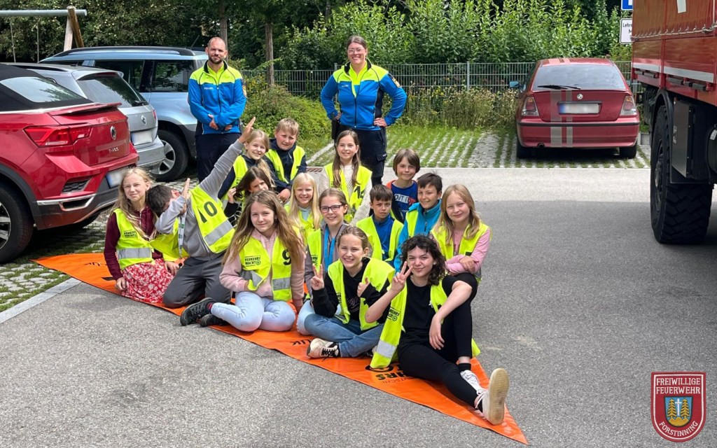 Am Donnerstag, den 04.07.2024, fand vormittags eine Schulung der ersten und zweiten Klasse der Grundschule Forstinning statt. Die jungen Schülerinnen und Schüler lernten dabei die Gefahren kennen, die von LKWs und großen Fahrzeugen im Straßenverkehr ausgehen. Die Polizeiinspektion Poing veranstaltet dazu eine „Tote Winkel“-Schulung bei der z.B. anschaulich demonstriert wird, welcher Bereich von LKW-Fahrern im Alltag nicht oder nur schwer einsehbar ist. Dieser spezielle Bereich ist für alle Fußgänger und Fahrradfahrer (und allgemein alle anderen Verkehrsteilnehmer) gefährlich, insbesondere aber für Kinder. Wir unterstützen die Kollegen aus Poing mit Maschinisten und unserem Gerätewagen, der das Training anschaulicher macht und für die Kinder immer eine große Freude ist. Der Hintergrund bleibt aber ernst und wir begleiten das Training gerne jedes Jahr wieder, um Unfällen vorzubeugen!