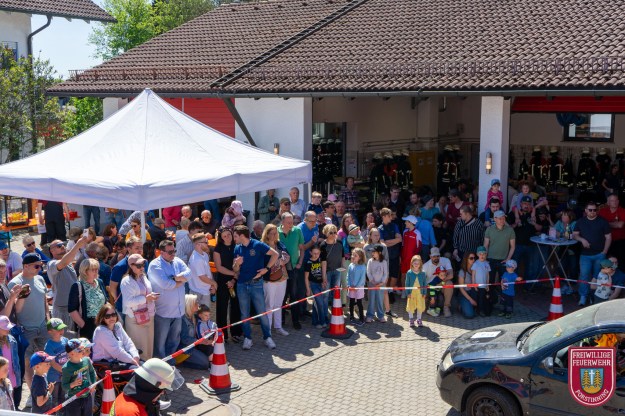 Das Highlight war eine Übung zur technischen Hilfeleistung nach einem Verkehrsunfall. Moderiert und geleitet von unseren Kommandanten befreiten wir eine eingeklemmte Person mittels großer Seitenöffnung und Dachöffnung aus einem Fahrzeug. Vor versammeltem Publikum konnten wir nicht nur die diversen Geräte erklären und in Aktion zeigen, sondern auch wie komplex und technisch unsere Aufgaben sind.