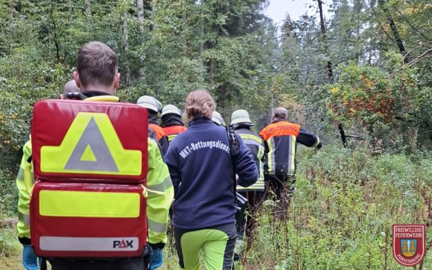 Am frühen Donnerstagnachmittag, den 09.10.2025 wurden wir zur Rettung einer Person nach einem Waldunfall alarmiert. Der sich bereits am Einsatzort befindliche Rettungsdienst hatte uns nachalarmiert, da die Person im unwegsamen Gelände des Ebersberger Forsts verunglückt ist und dementsprechend nicht mehr in der Lage war, eigenständig zum nächsten Geräumt (Waldstraße, unbefestigte Schneisen) zu gelangen. Wir unterstützen den Rettungsdienst beim schonenden und verletzungsgerechten Transport der Person zum Rettungswagen mithilfe unseres Spineboards.