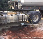 aber etliche Liter Hydrauliköl ausgetreten sind. Die Feuerwehr Anzing sicherte die Unfallstelle ab und unterstützte uns mit Abdichtmaterial. Anschließend wurde das ausgetretene Öl mit Bindemittel aufgenommen um eine weitere Verbreitung zu verhindern. Mit einer Umfüllpumpe des Rüstwagens aus Markt Schwaben wurden die ca.150 Liter Öl in bereitgestellte Behälter umgepumpt.