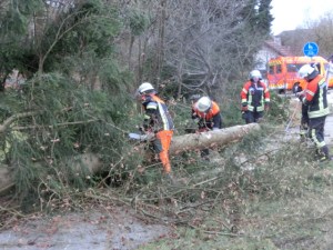 Auch die FF Forstinning wurde zu zahlreichen Bäumen über der Fahrbahn alarmiert.