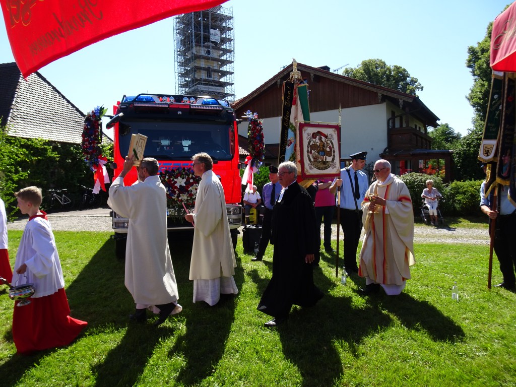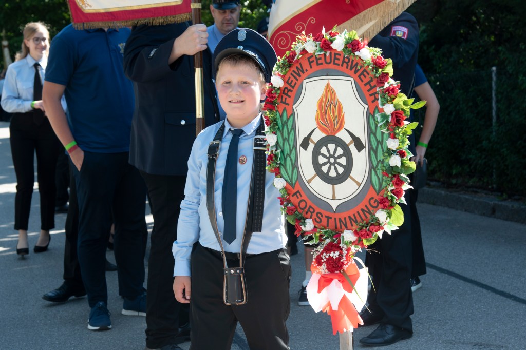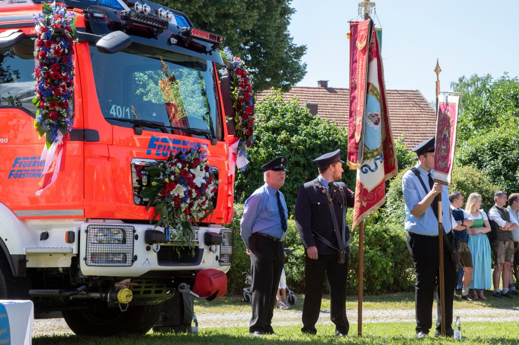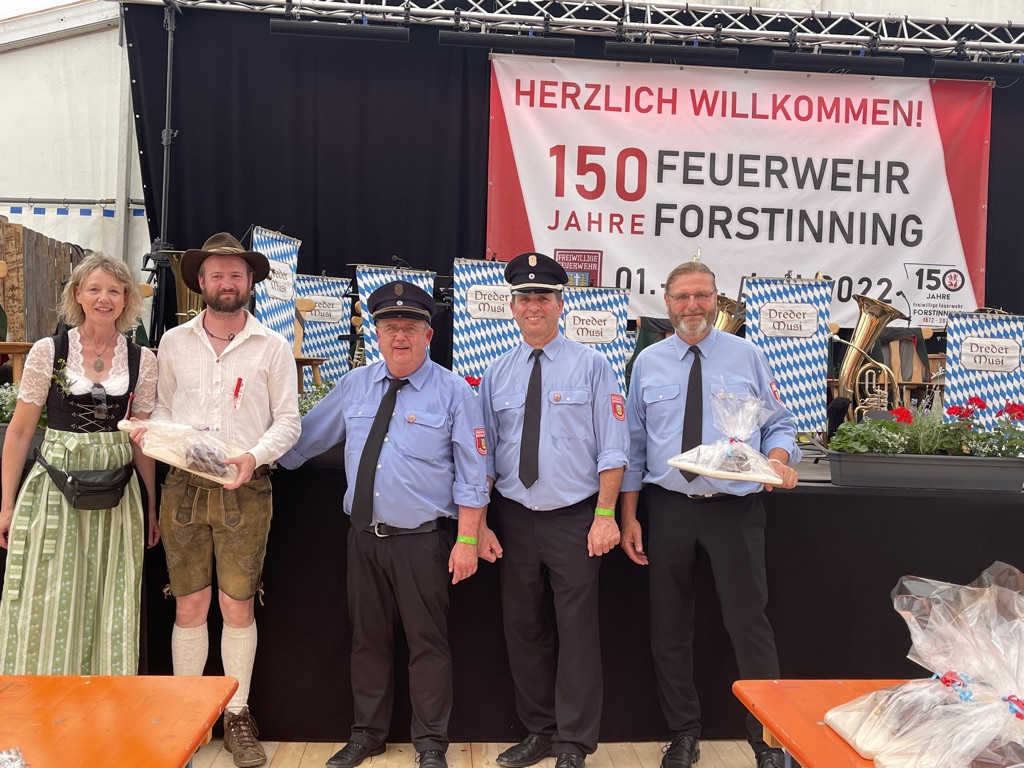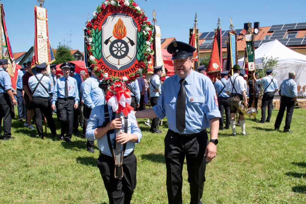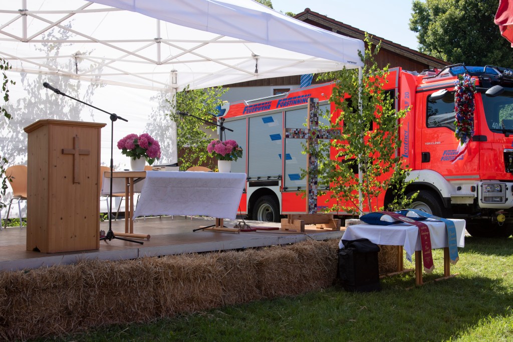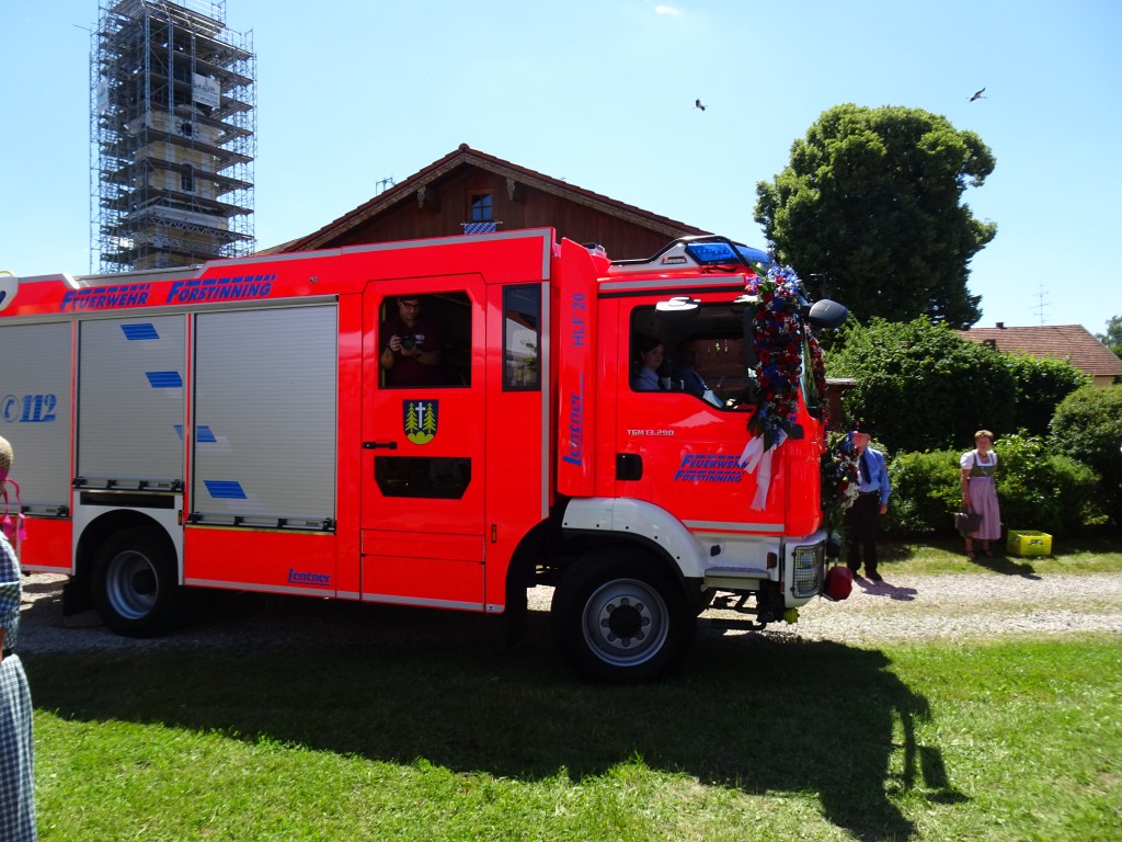 Am 3.Juli war es dann so weit. Mit einem Weißwurstfrühstück begrüßten wir unsere Gäste und Vereine. Bei strahlendem Sonnenschein konnten wir unseren Festgottesdienst auf der Heinzeller Wiese feiern. Festlich geschmückt der Altar unsere neu restaurierte Fahne und unser neues Feierwehrfahrzeug das an diesem Festtag ebenfalls feierlich gesegnet wurde. Den Gottesdienst feierten wir gemeinsam mit Herrn Pfarrer Waldherr, den evangelisch Pfarrer Fuchs aus Markt Schwaben, unser Diakon Hans Dimke und unser Feuerwehr Diakon Mathias Holzbauer, der in seiner offenen und herzlichen Art auch die Predigt halten konnte. Musikalisch wurde der Gottesdienst von unserem Rupert Mayer Chor begleitet. Die Segnung von Fahrzeug, Fahne und den neuen Fahnenbändern, die von unserem Schirmherrn Rupert Ostermair und vom Festausschuss gestiftet wurden übernahm unser Pfarrer Waldherr. Ein wunderschöner Farbenprächtiger Gottesdienst wurde abgeschlossen mit der Bayern Hymne die von beiden Musikkapellen unter Weiß blauem Himmel gespielt wurde. Der Festumzug mit allen Vereinen endete dann wieder im Bierzelt bei gekühltem Bier und einem guten Mittagessen. Ein wunderschönes Wochenende für die Feuerwehr Forstinning neigt sich zu ende. Der Festausschuss bedankt sich bei all seinen Vereinen mit einem kleinem Gastgeschenk .