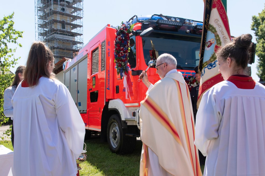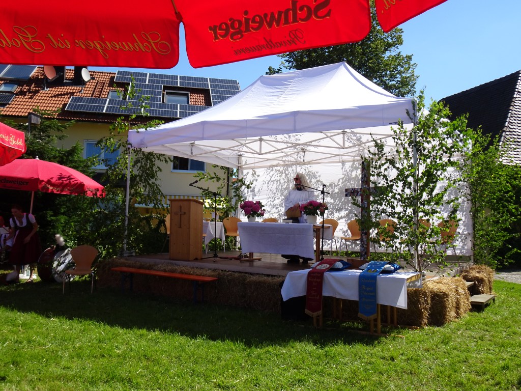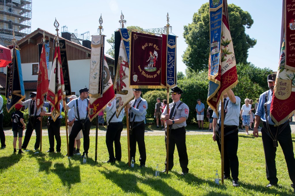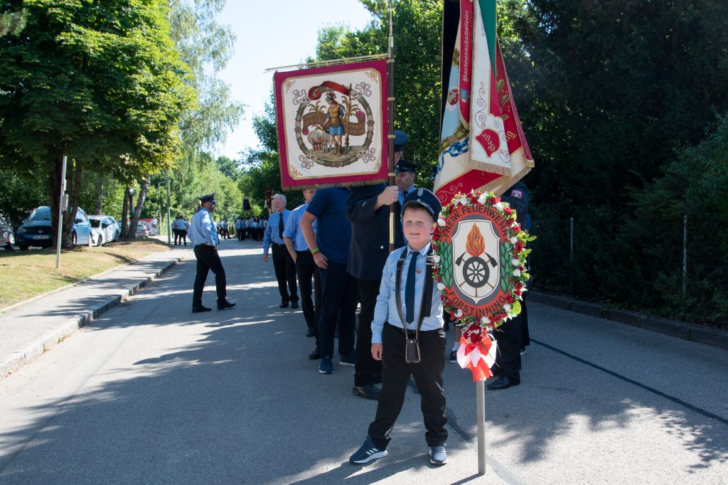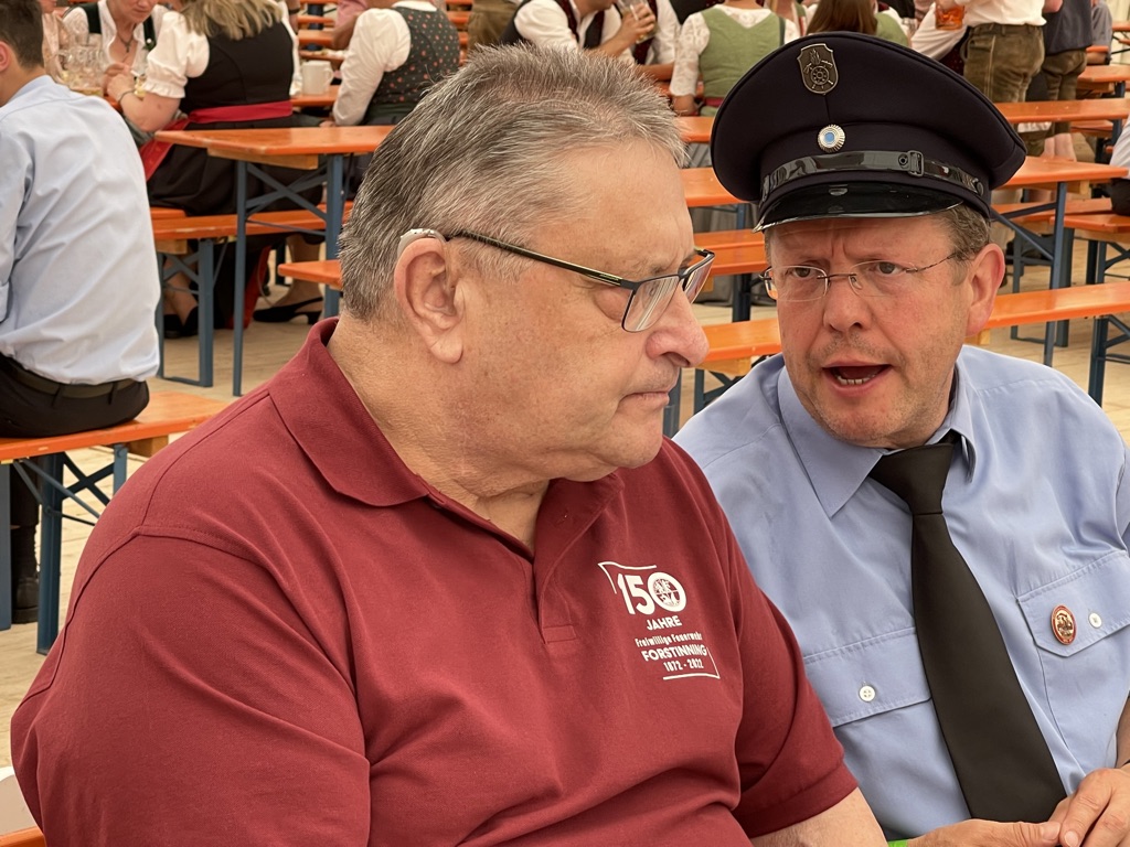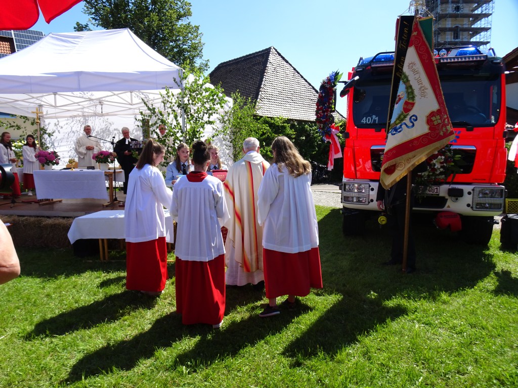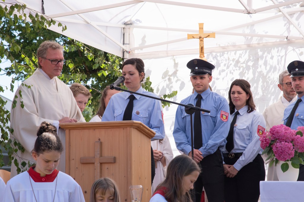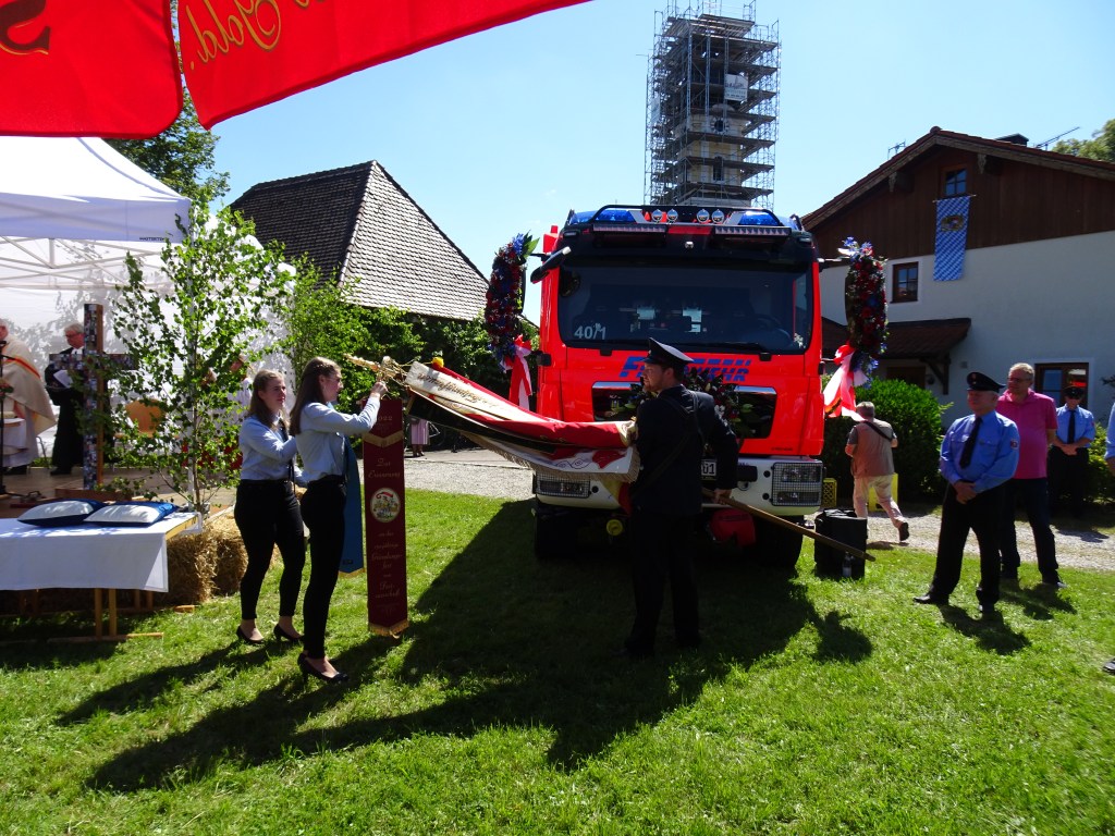 Am 3.Juli war es dann so weit. Mit einem Weißwurstfrühstück begrüßten wir unsere Gäste und Vereine. Bei strahlendem Sonnenschein konnten wir unseren Festgottesdienst auf der Heinzeller Wiese feiern. Festlich geschmückt der Altar unsere neu restaurierte Fahne und unser neues Feierwehrfahrzeug das an diesem Festtag ebenfalls feierlich gesegnet wurde. Den Gottesdienst feierten wir gemeinsam mit Herrn Pfarrer Waldherr, den evangelisch Pfarrer Fuchs aus Markt Schwaben, unser Diakon Hans Dimke und unser Feuerwehr Diakon Mathias Holzbauer, der in seiner offenen und herzlichen Art auch die Predigt halten konnte. Musikalisch wurde der Gottesdienst von unserem Rupert Mayer Chor begleitet. Die Segnung von Fahrzeug, Fahne und den neuen Fahnenbändern, die von unserem Schirmherrn Rupert Ostermair und vom Festausschuss gestiftet wurden übernahm unser Pfarrer Waldherr. Ein wunderschöner Farbenprächtiger Gottesdienst wurde abgeschlossen mit der Bayern Hymne die von beiden Musikkapellen unter Weiß blauem Himmel gespielt wurde. Der Festumzug mit allen Vereinen endete dann wieder im Bierzelt bei gekühltem Bier und einem guten Mittagessen. Ein wunderschönes Wochenende für die Feuerwehr Forstinning neigt sich zu ende. Der Festausschuss bedankt sich bei all seinen Vereinen mit einem kleinem Gastgeschenk .