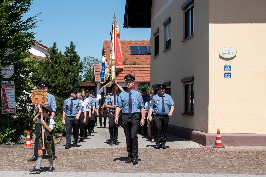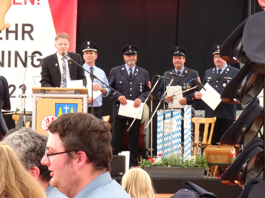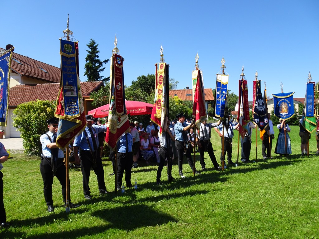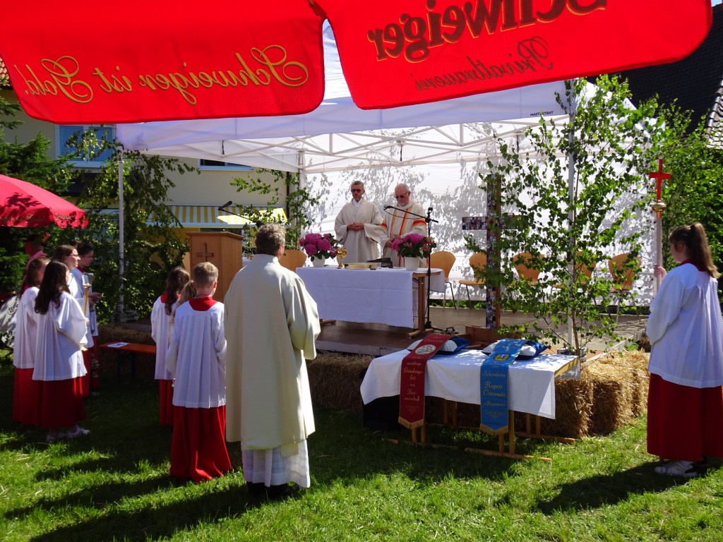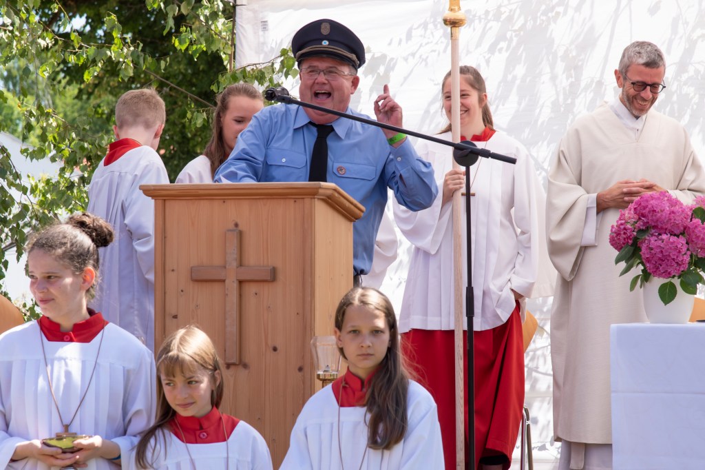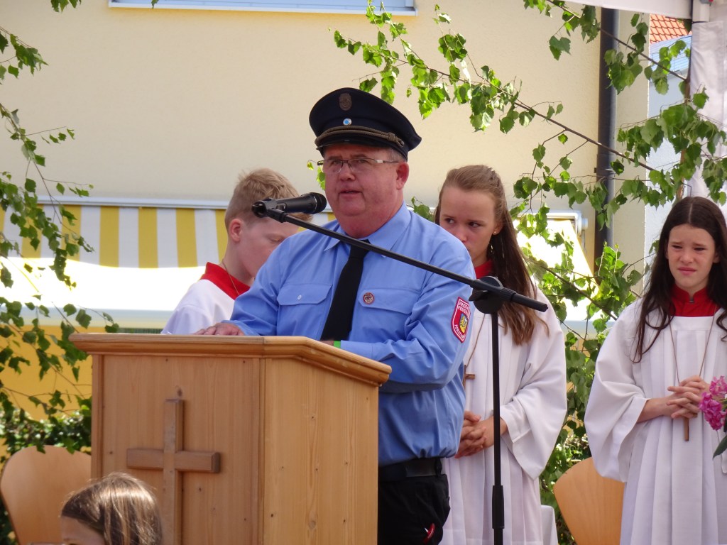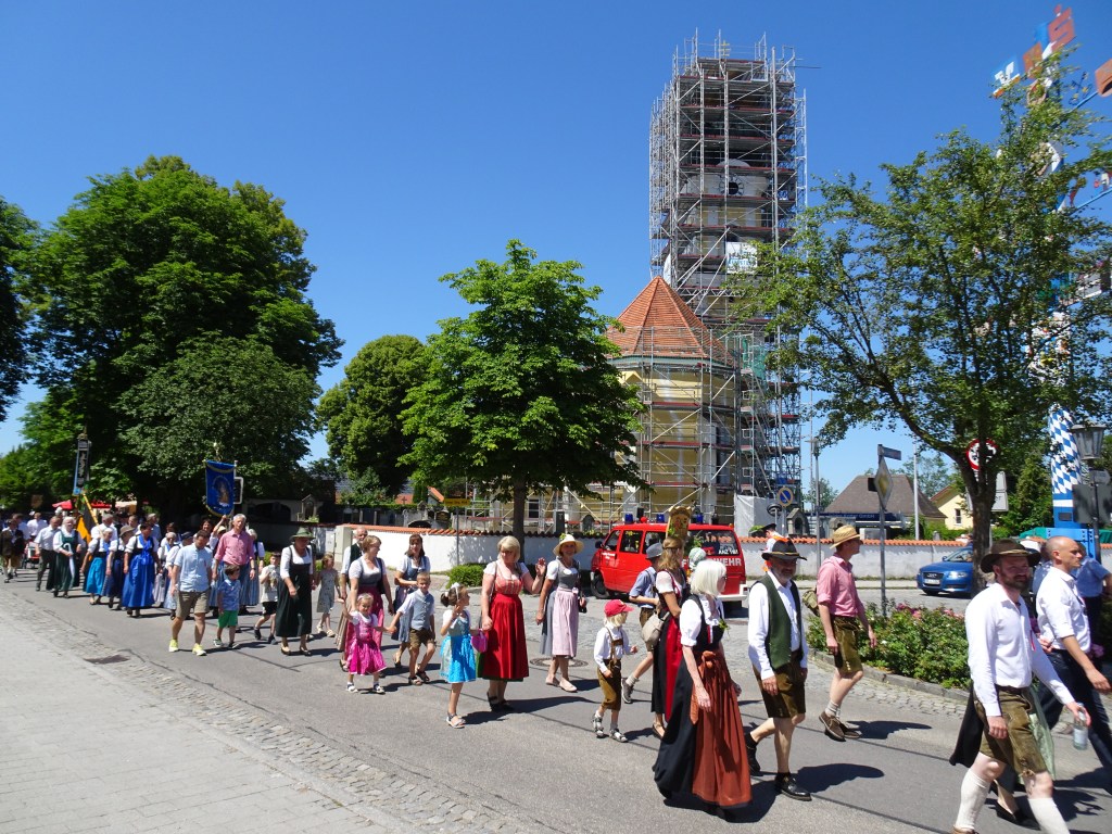 Am 3.Juli war es dann so weit. Mit einem Weißwurstfrühstück begrüßten wir unsere Gäste und Vereine. Bei strahlendem Sonnenschein konnten wir unseren Festgottesdienst auf der Heinzeller Wiese feiern. Festlich geschmückt der Altar unsere neu restaurierte Fahne und unser neues Feierwehrfahrzeug das an diesem Festtag ebenfalls feierlich gesegnet wurde. Den Gottesdienst feierten wir gemeinsam mit Herrn Pfarrer Waldherr, den evangelisch Pfarrer Fuchs aus Markt Schwaben, unser Diakon Hans Dimke und unser Feuerwehr Diakon Mathias Holzbauer, der in seiner offenen und herzlichen Art auch die Predigt halten konnte. Musikalisch wurde der Gottesdienst von unserem Rupert Mayer Chor begleitet. Die Segnung von Fahrzeug, Fahne und den neuen Fahnenbändern, die von unserem Schirmherrn Rupert Ostermair und vom Festausschuss gestiftet wurden übernahm unser Pfarrer Waldherr. Ein wunderschöner Farbenprächtiger Gottesdienst wurde abgeschlossen mit der Bayern Hymne die von beiden Musikkapellen unter Weiß blauem Himmel gespielt wurde. Der Festumzug mit allen Vereinen endete dann wieder im Bierzelt bei gekühltem Bier und einem guten Mittagessen. Ein wunderschönes Wochenende für die Feuerwehr Forstinning neigt sich zu ende. Der Festausschuss bedankt sich bei all seinen Vereinen mit einem kleinem Gastgeschenk .