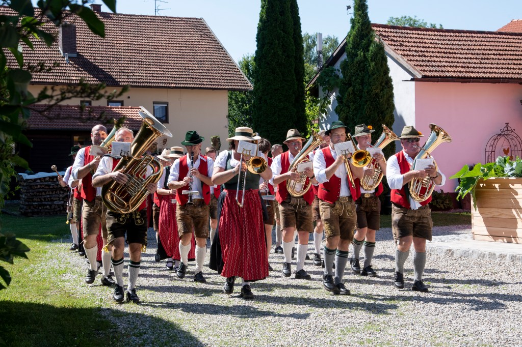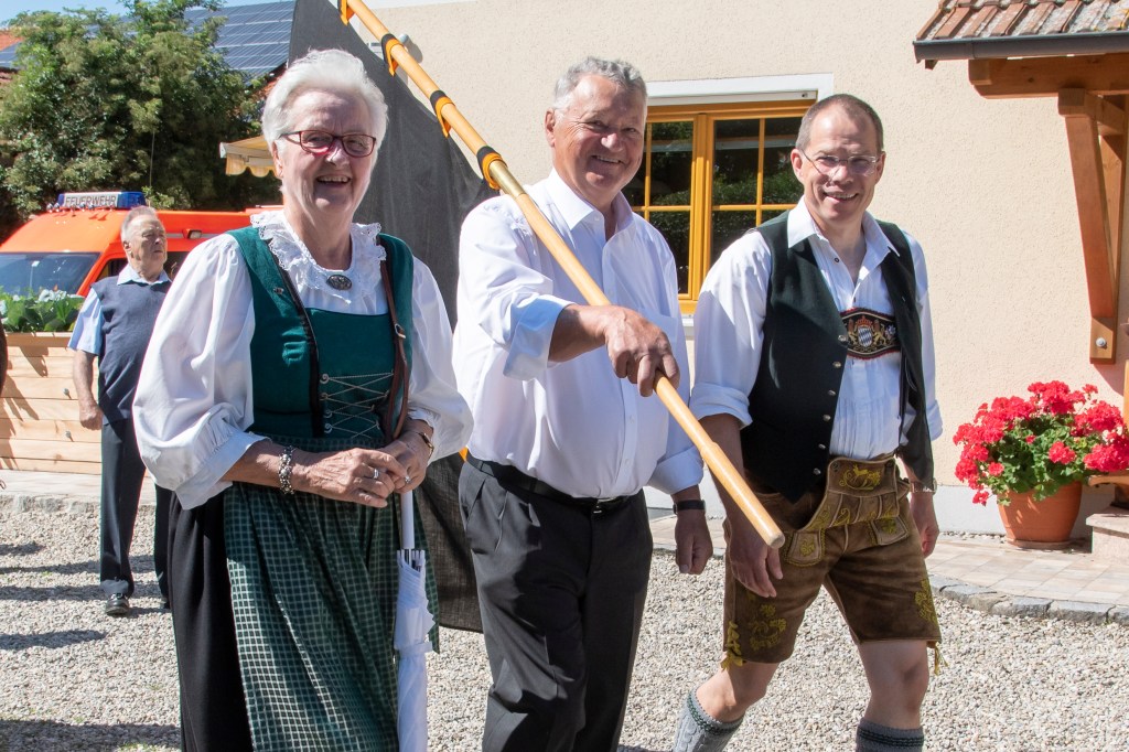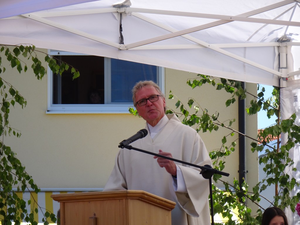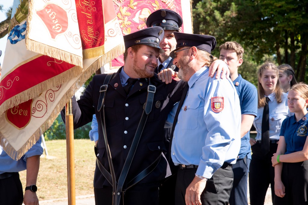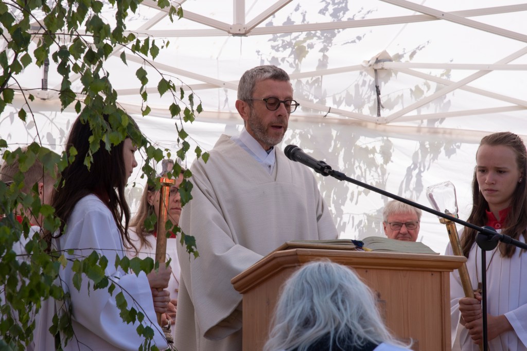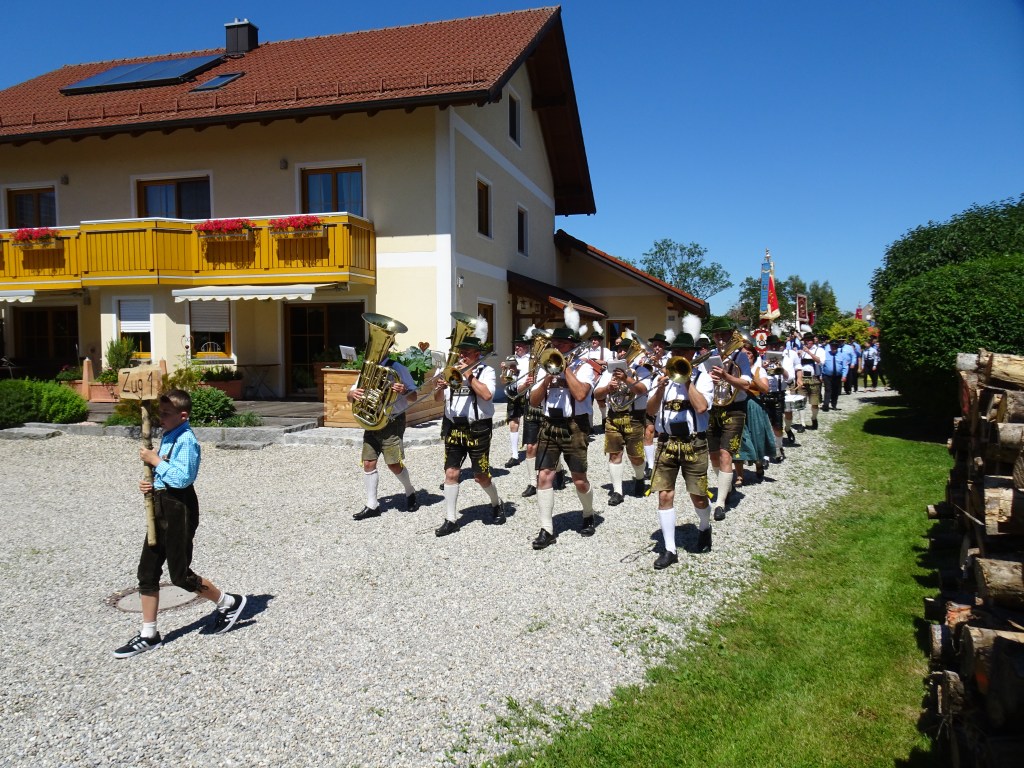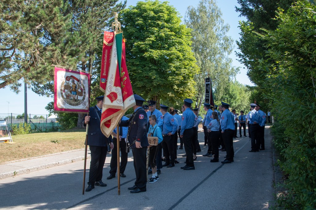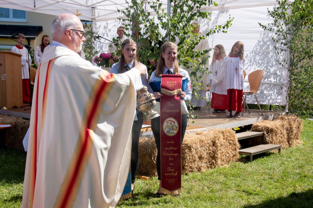Am 3.Juli war es dann so weit. Mit einem Weißwurstfrühstück begrüßten wir unsere Gäste und Vereine. Bei strahlendem Sonnenschein konnten wir unseren Festgottesdienst auf der Heinzeller Wiese feiern. Festlich geschmückt der Altar unsere neu restaurierte Fahne und unser neues Feierwehrfahrzeug das an diesem Festtag ebenfalls feierlich gesegnet wurde. Den Gottesdienst feierten wir gemeinsam mit Herrn Pfarrer Waldherr, den evangelisch Pfarrer Fuchs aus Markt Schwaben, unser Diakon Hans Dimke und unser Feuerwehr Diakon Mathias Holzbauer, der in seiner offenen und herzlichen Art auch die Predigt halten konnte. Musikalisch wurde der Gottesdienst von unserem Rupert Mayer Chor begleitet. Die Segnung von Fahrzeug, Fahne und den neuen Fahnenbändern, die von unserem Schirmherrn Rupert Ostermair und vom Festausschuss gestiftet wurden übernahm unser Pfarrer Waldherr. Ein wunderschöner Farbenprächtiger Gottesdienst wurde abgeschlossen mit der Bayern Hymne die von beiden Musikkapellen unter Weiß blauem Himmel gespielt wurde. Der Festumzug mit allen Vereinen endete dann wieder im Bierzelt bei gekühltem Bier und einem guten Mittagessen. Ein wunderschönes Wochenende für die Feuerwehr Forstinning neigt sich zu ende. Der Festausschuss bedankt sich bei all seinen Vereinen mit einem kleinem Gastgeschenk .