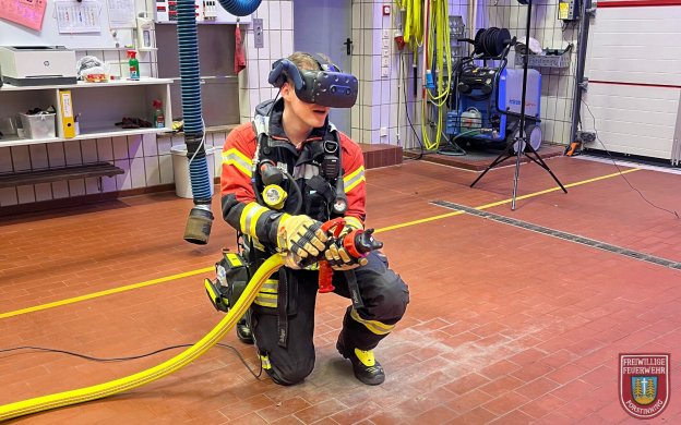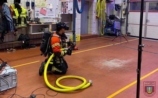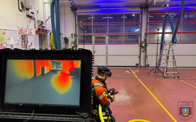In der ersten Station konnten die Übungsteilnehmer mittels eines VR-Trainers einen simulierten Innenangriff beüben. Hierzu setzen die Geräteträger eine VR-Brille auf; sie befanden sich sodann in einem virtuellen Brandszenario und konnten einen klassischen Innenangriff durchführen. Anschließend konnte in einem Feedback die Temperaturentwicklung im Raum, die Wasserabgabe sowie die Vorgehensweise analysiert werden. Wir danken den Kreisausbildern für Atemschutz der @kbi_ebersberg für die Bereitstellung des VR-Trainers sowie die tatkräftige Unterstützung.