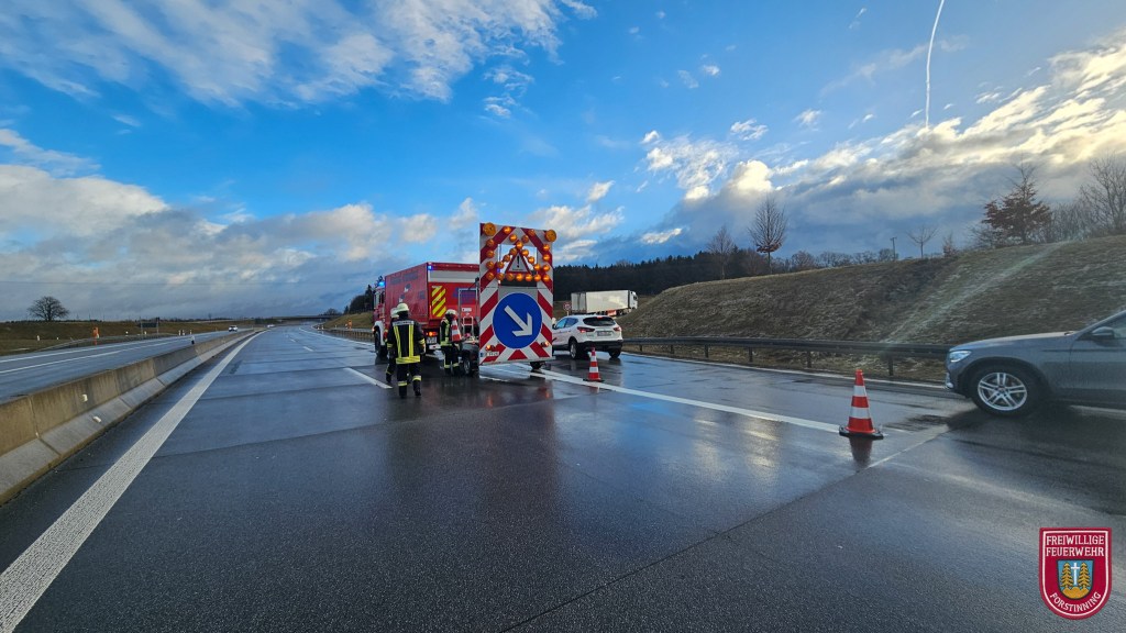 Wir verfügen über einen Verkehrssicherungsanhänger, der im Einsatz hauptsächlich mit unserem Tanklöschfahrzeug 23/1 oder dem Gerätewagen 67/1 gezogen wird. Der Anhänger ist notwendig, wenn bei Unfällen auf Bundes-, Staats- oder Gemeindestraßen sowie auf der Autobahn A94 der Verkehr umgeleitet oder vollkommen gesperrt werden muss. Nachfolgend seht ihr zwei Bilder aus dem aktiven Einsatz unseres Anhängers. Dieser verfügt über programmierbare Beleuchtungseinrichtungen und einen automatisch positionierbaren Pfeil. Alle Funktionen sowie das Ausklappen sind per Funkfernsteuerung kontrollierbar.