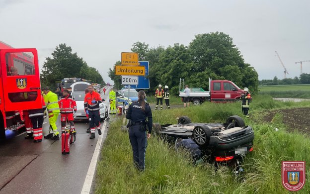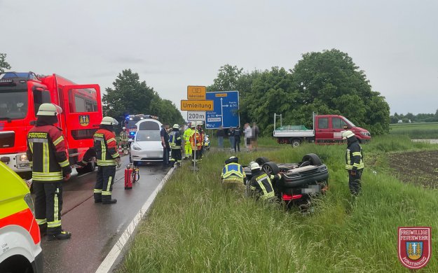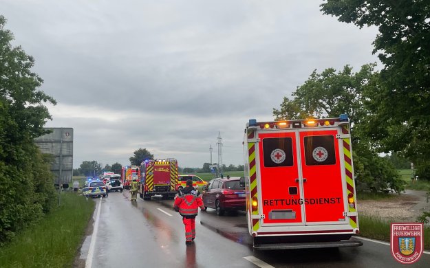 Einsatzkräfte: Hilfeleistungslöschgruppenfahrzeug, Gerätewagen, Tanklöschfahrzeug mit Verkehrssicherungsanhänger, Feuerwehr Anzing, Kreisbrandinspektion, Rettungsdienst, Polizei