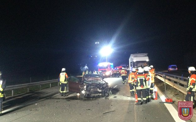 Einsatzkräfte: Hilfeleistungslöschgruppenfahrzeug, Tanklöschfahrzeug, Gerätewagen, Verkehrssicherungsanhänger, FF Anzing, KBI Ebersberg, Polizei, Rettungsdienst