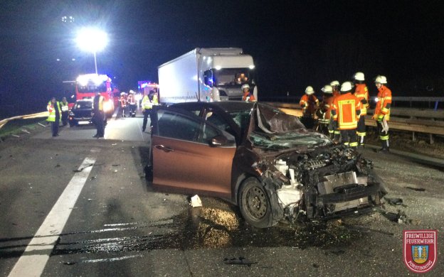 Am frühen Sonntagmorgen, um 07:07 Uhr, alarmierte uns die Leitstelle zu einem Verkehrsunfall auf der A94. Ein PKW hatte sich alleinbeteiligt in einer ungewöhnlichen Lage auf der Leitplanke nahe der Autobahnausfahrt Forstinning Ost festgefahren. Die erste Aufgabe für uns war es, das Fahrzeug in seiner ungewöhnlichen Lage zu sichern, um ein weiteres Abrutschen oder sogar Überkippen zu verhindern. Wir stellten zudem den Brandschutz sicher, und fingen auslaufende Betriebsstoffe unter dem Fahrzeug auf. Den Fahrer konnten wir sicher dem Rettungsdienst übergeben.
