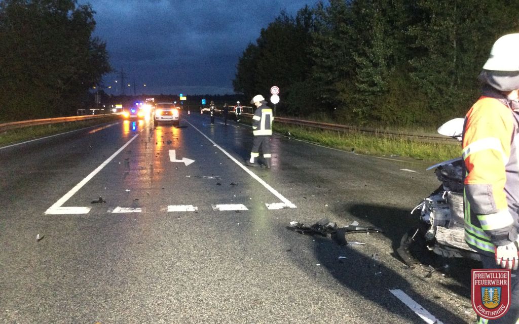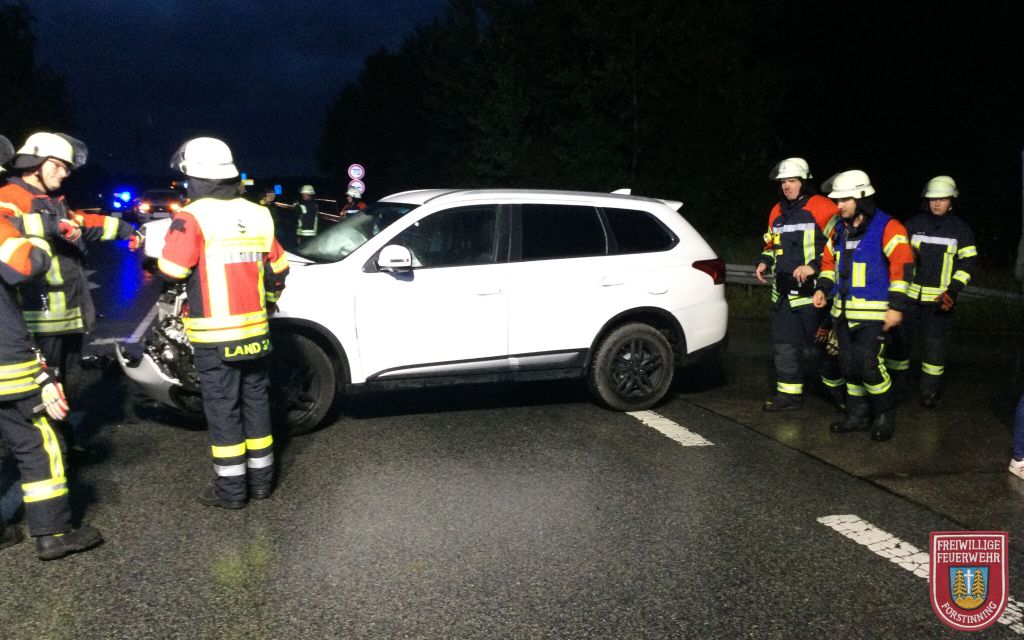 Am Montagabend, den 30.09.2024 wurden wir zu einem Verkehrsunfall zwischen zwei PKW auf die B12 bei Forstinning alarmiert. Der Rettungsdienst war bereits vor uns eingetroffen und konnte die Insassen der PKW betreuen. Diese waren nicht eingeklemmt und weitestgehend unverletzt. Aufgrund der weitläufigen Verunreinigung der Fahrbahnen durch auslaufende Betriebsstoffe und Teile der Fahrzeuge richteten wir zunächst eine Vollsperrung der Straße und anschließend eine Umleitung für die Verkehrsteilnehmer ein. Nachdem wir die Fahrzeugteile von der Fahrbahn beseitigt und die auslaufenden Betriebsstoffe gebunden hatten, konnten wir die Sperrung wieder aufheben. Nach einer guten Stunde rückten wir wieder vollständig ein.