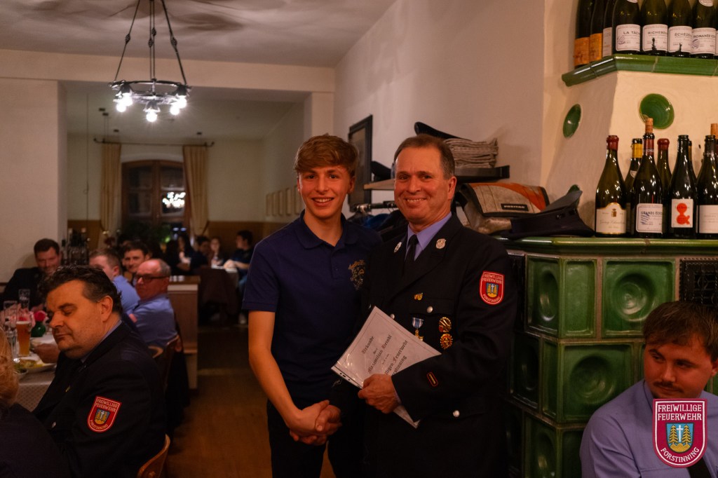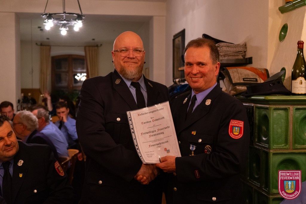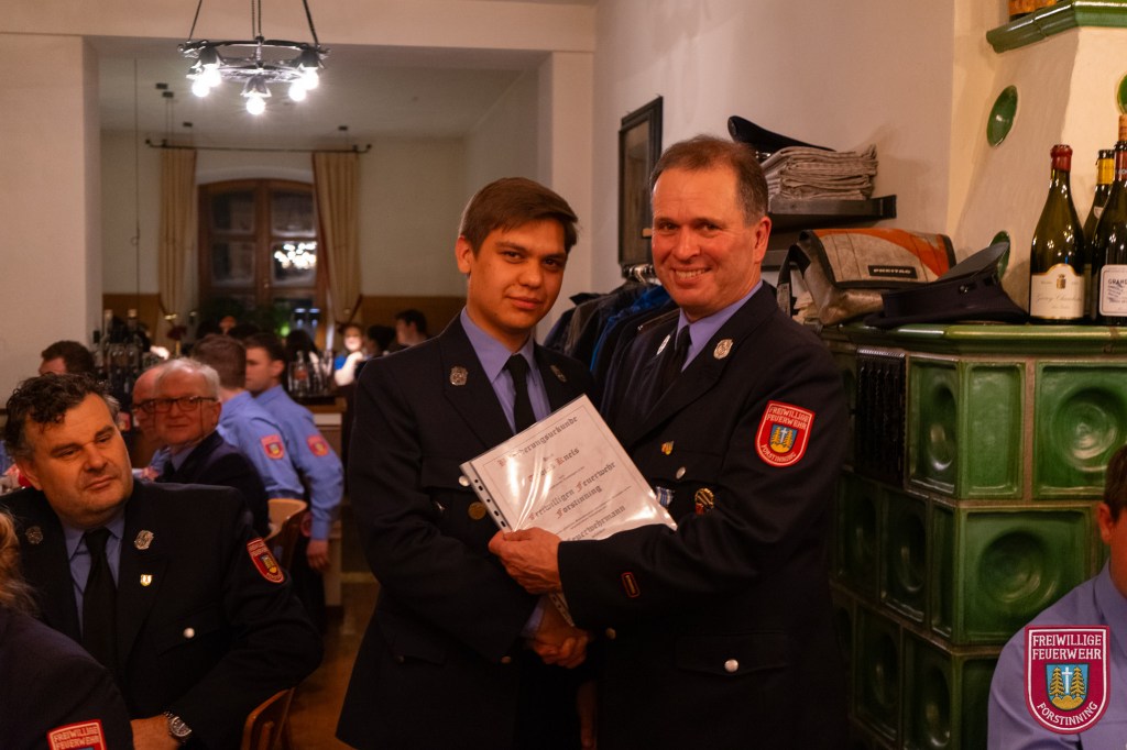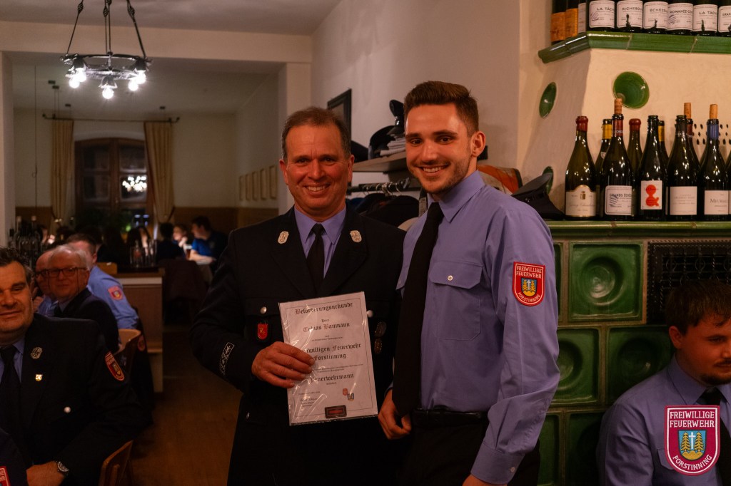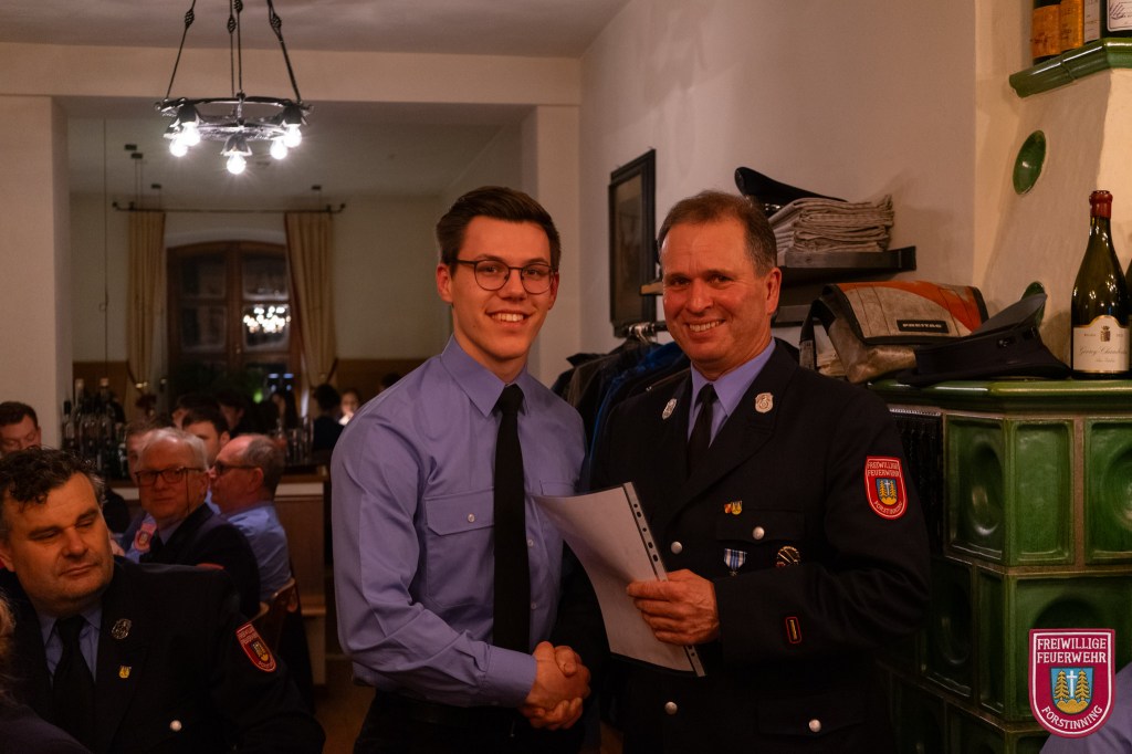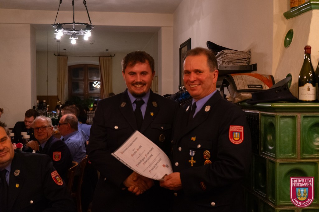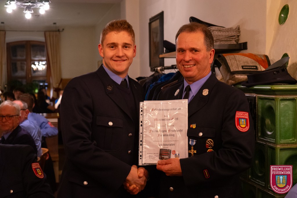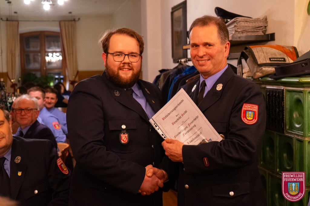 In diesem Jahr neu in die Feuerwehr aufgenommen wurden Vitus Fiehl, Maximilian Heindl, Simon Kilger, Markus Numberger, Lorenz Riedl und Lukas Rott. Zum Feuerwehrmann wurden Florian Anderl, Lukas Anderl, Tobias Baumann, Maximilian Furtmayr, Tobias Knels, Torsten Pawelczyk, Alexander Scherl und Martin Seidl befördert. Zum Löschmeister befördert wurden Michael van den Berg, Benedikt Seidl und Maximilian Geltl. Martin Jana wurde zum Oberlöschmeister befördert.