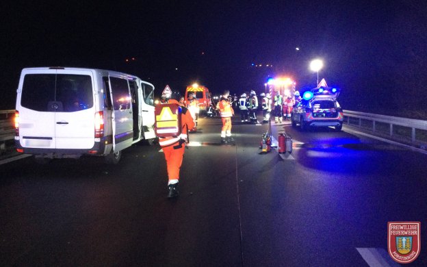 Am Dienstagabend um 23:02 Uhr wurden wir zusammen mit der Feuerwehr Anzing auf die A94 zu einem Verkehrsunfall alarmiert. Kurz nach der Anschlussstelle Forstinning in Fahrtrichtung München waren ein LKW und ein voll besetzter Kleintransporter zusammengestoßen.