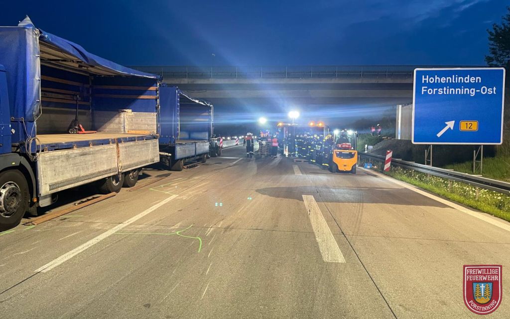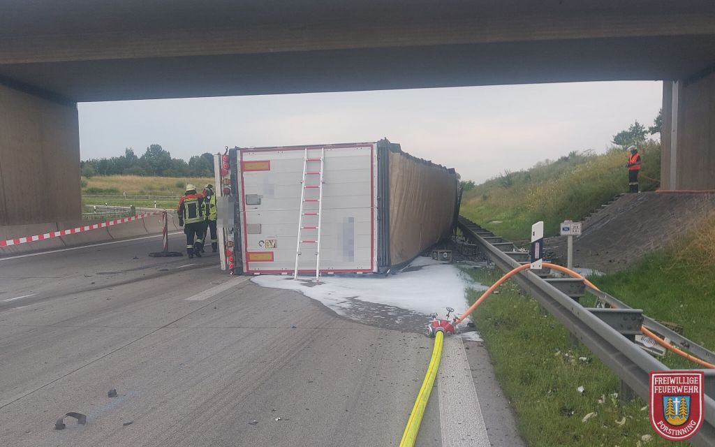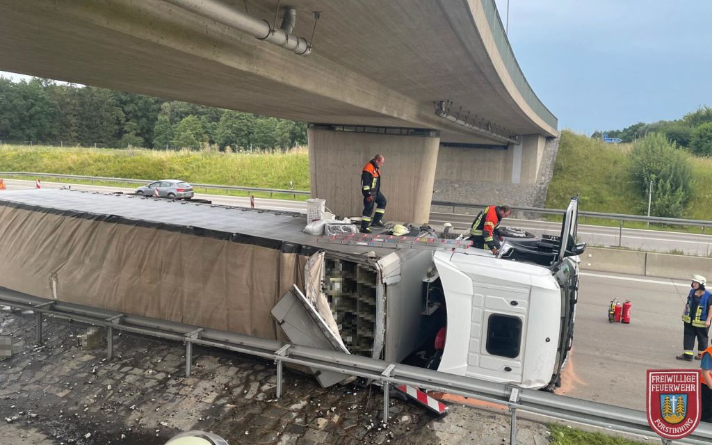 Am frühen Freitagabend, den 19.07.2024, wurden die Feuerwehren Anzing und Forstinning zu einem verunglückten LKW auf die A94 Fahrtrichtung München alarmiert. Durch den Unfall geriet der LKW, der Leergut geladen hatte, in Seitenlage.