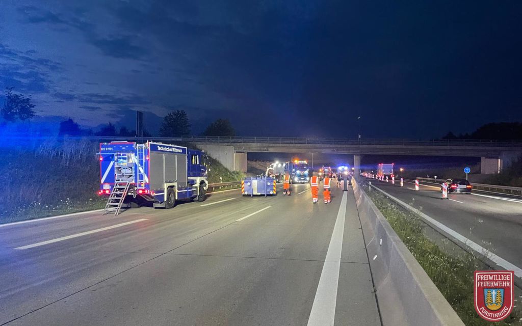 Wir waren ab ca. 21:30 Uhr nur noch mit dem Tanklöschfahrzeug vor Ort, um die Einsatzstelle gemeinsam mit dem THW zu beleuchten und weiterhin den Brandschutz sicherzustellen. Gegen Mitternacht rückte auch unser letztes Fahrzeug wieder ein. Die Autobahn war allerdings noch bis ca. 2:30 Uhr voll gesperrt. Die Sperrung übernahm im Verlauf des Einsatzes die Autobahnmeisterei.